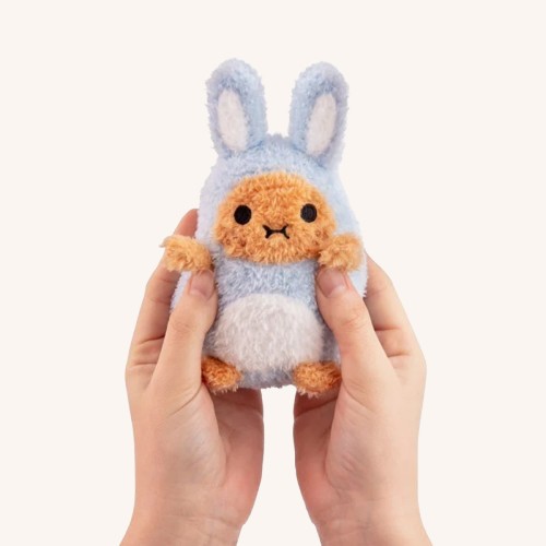 Your favourite mini potato plushie has dressed up this spring as a totally adorable bunny rabbit! This mini potato plushie is made from super soft fluffy blue fabric, with soft little rabbit ears, a pompom tail and stuffed to the brim for those extra chubby cuddles. With Noodoll’s new sitting down plushie position, you can sit this little rabbit plushie anywhere, whether you sit them on your bed, your desk or a shelf, they look adorable always.