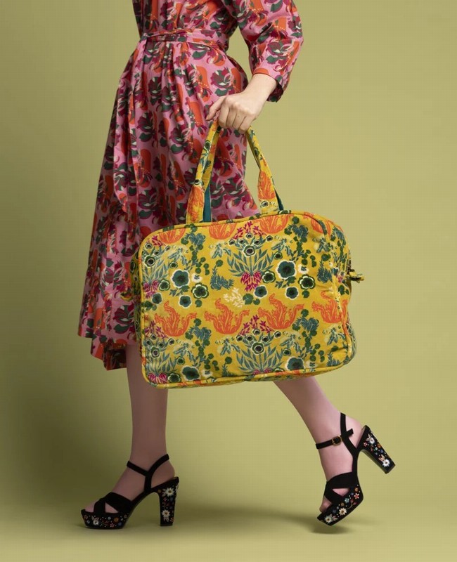 Les Touristes have designed this luxurious velvet bag for all those weekends away. The perfect size to fit everything you would need, this weekend bag is practical and stylish. Finished with a beautifully bright geometric pattern in 100% cotton velvet, cotton lining and a zip along the top.