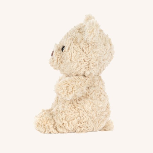Say hello to our most famous and loved teddy bear – Bartholomew Bear – as a youngster! His fur is still growing and a lighter tone, but you can already see an adorable nose and twinkling eyes… Jellycat’s Bartholomew Bear Junior loves to dress up and dance! There’s a large dressing up box in his room full of outfits and costumes, made by his artist cousin Leola Bear. His father is a professional musician, which is where Bartholomew gets his love of music and performing. Bartholomew Bear Junior can be a little on the shy side at first. Please be kind and speak gently. Do encourage him to brush his fur and teeth regularly and continue to work on his reading. Details Care