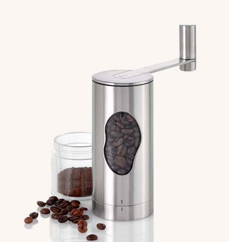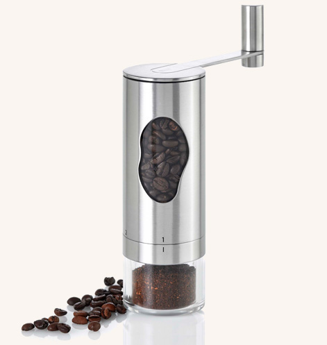 Pair Mrs. Bean and Mr. Brew to make exceptional cups of coffee. Mrs. Bean makes grinding coffee beans effortless and energy efficient, thanks to its simple crank handle. The CeraCutXL® grinder mechanism is boosted with six PRECISE+® grinding settings, allowing one to achieve powder-fine to coarse grinds. The grinder container holds approx. 50 grams of coffee beans. The collection container is designed for approx. 25 grams (on setting 2) of coffee powder and can easily removed by unscrewing.