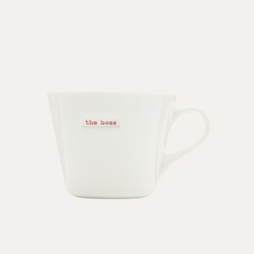 Let them know they really are something special with this Keith Brymer Jones medium bucket mug hand stamped with ‘the boss’ in red. The perfect fun and practical gift for a friend, family member or colleague. The Word Range collection by Keith Brymer Jones offers timeless white porcelain tableware with a fun contemporary twist. Also each piece in the range is hand-finished with a stamped word or phrase. With a pop of colour to finish, it adds a personal touch to your tableware collection.