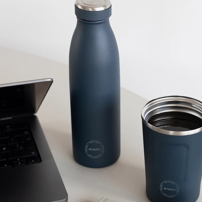 AYA&IDA’s 500ml drinking bottle is made to keep your drinks cold for 24 hours and hot for 12. Take the half liter bottle with you to work, school, sports and on holiday. That way you have cold (or hot) drinks – also at the end of the day. With this drinking bottle, powder-coated in the delicate dark green colour, Tropical Green, you get a hard-wearing and functional bottle in a classic and different color at the same time. The bottle, and the inside of the lid, are made of 1st class food grade stainless steel 18/8, and it neither emits nor receives taste.