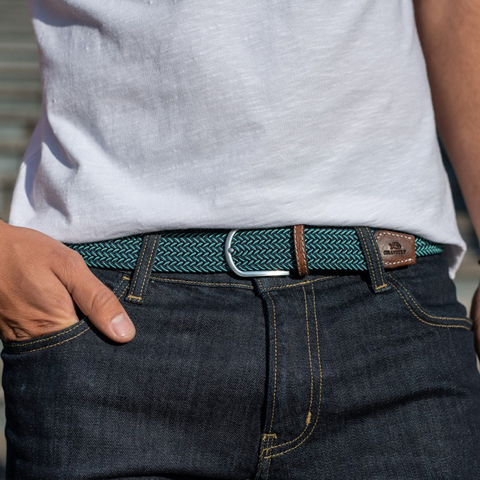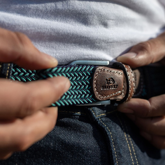 These elastic woven belts from Billybelt feature a multicolour design and come in a range of cool colourways. This clever design has no holes, allowing you to wear the belt at exactly the right size. It is finished with calfskin leather detailing and a zinc alloy buckle. Comes in a BILLYBELT cotton pouch.