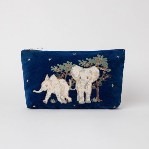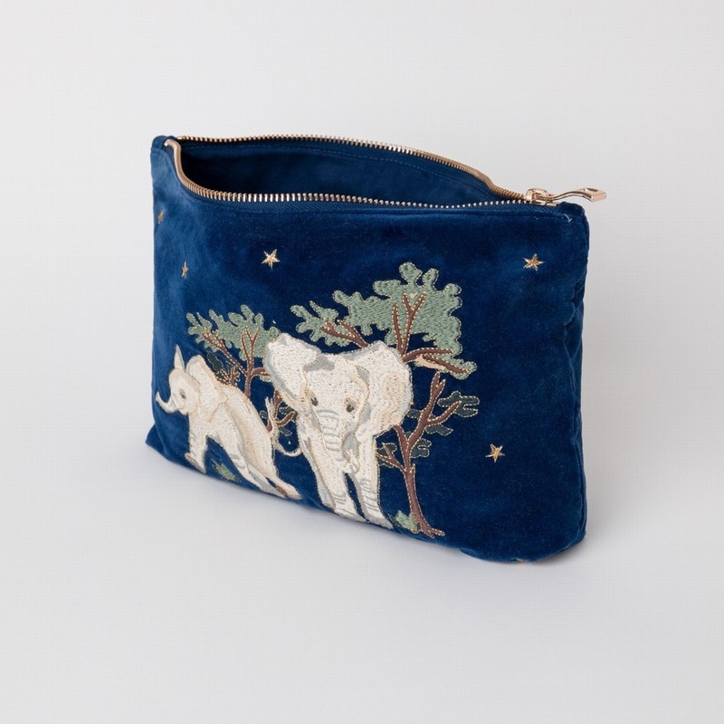 Baby Elephant Conservation Navy Velvet Everyday Pouch
