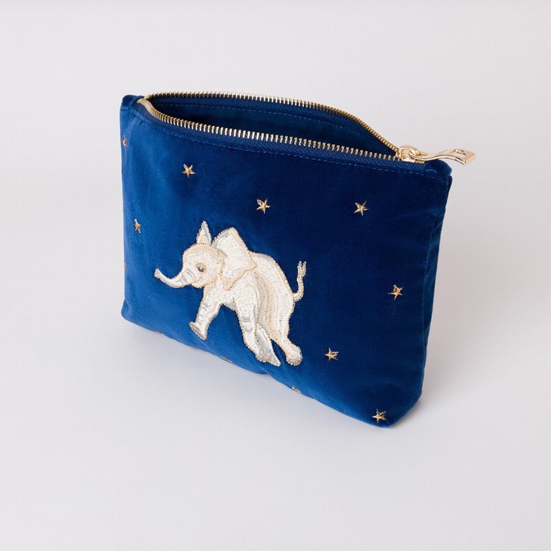 Baby Elephant Conservation Navy Velvet Mini Pouch