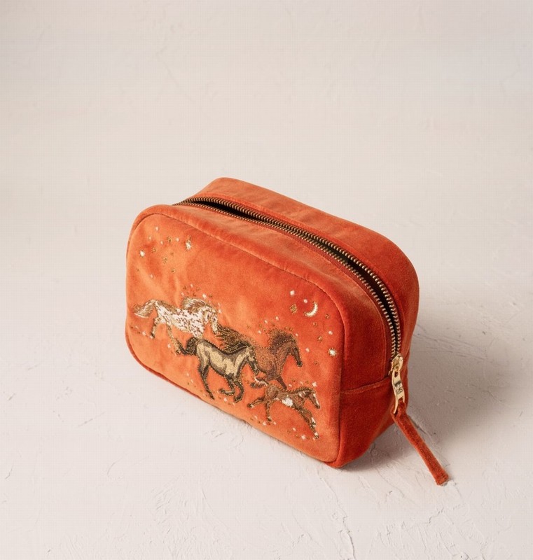 Celestial Wild Horses Velvet Makeup Bag Terracotta