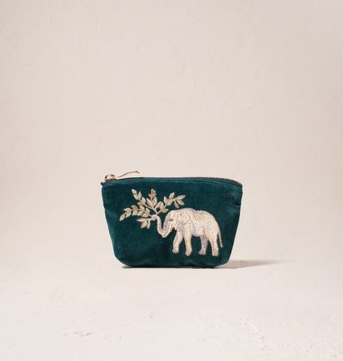 Elephant Herd Emerald Velvet Coin Purse