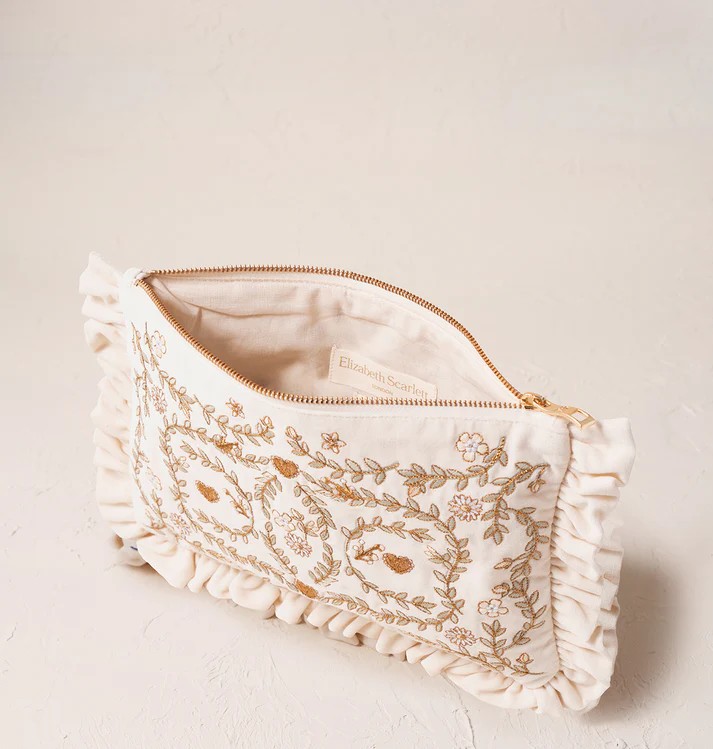 Mediterranean Garden Bride Velvet Frill Pouch Cream