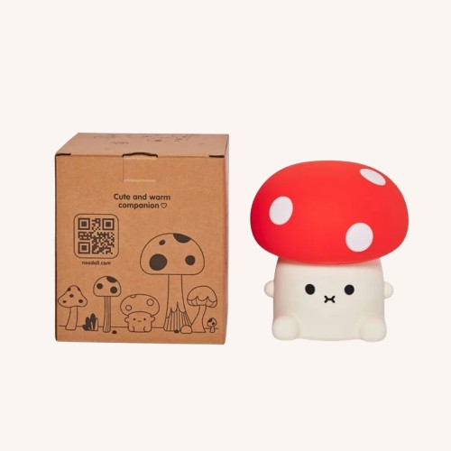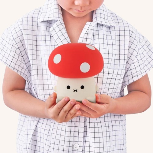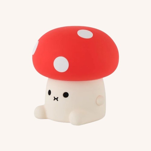 Squishy and soft, this cute little Ricemogu mushroom night-light from Noodoll is made from BPA free, environmentally friendly silicone. A cool to the touch, playful pat on the head changes little Ricemogu from brightly lit to softly glowing and off again. With a cream body, classic Noodoll expression and a red and white head, this rechargeable night light features a 15 minute timer and tap on technology. No batteries required. I The nightlight has 24 hours of battery life with only a 4 hour charge, casting a soft glow around the room all night long.