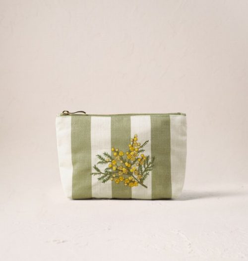 The mini pouch will keep you organised in style each and every day. Perfect to tidy up your cosmetics, tech essentials or favourite pieces of jewellery. They make life feel a little more organised and a lot more luxurious. This mini pouch is embroidered with wild mimosas on a cotton base and finished with a gold zip. They add a little luxury to your day and make a great gift for any occasion, the Elizabeth Scarlett collection is timeless and completely collectable, making it the perfect present every time. Design