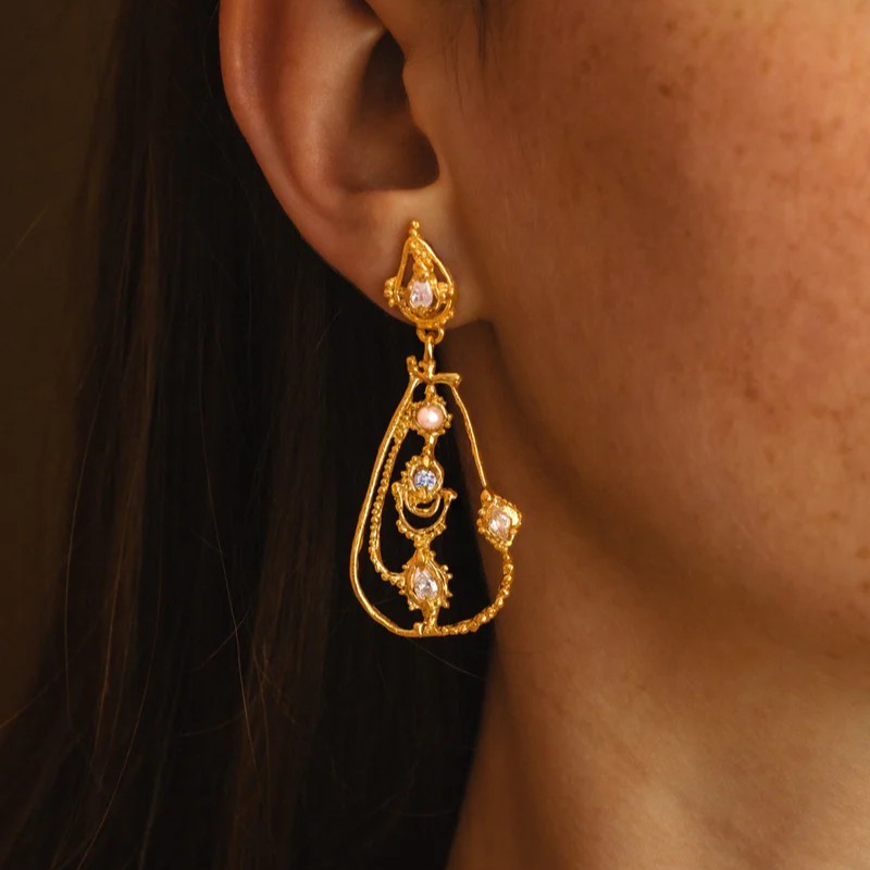 Ruby Jack decribes The Baby G earrings as ‘an ode to those giant 90s teardrop shaped earrings we all wanted’. Adorned with Freshwater Pearls, Cubic Zirconia and Aurora Borealis Crystal, these earrings are an absolute show-stopper. Beautifully designed with attention to detail, and finished with 24k Gold Plating. A truly special gift.